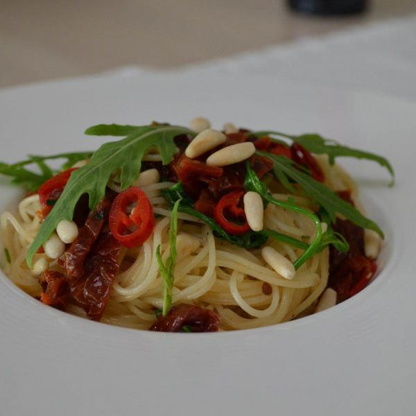 Capellini mit Rucola und getrockneten Tomaten – Zutaten und passende Produkte: